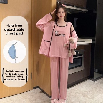 Nuevos conjuntos de ropa de dormir de cárdigan de manga larga ligera para mujer para primavera otoño ropa de casa holgada tejida en la parte delantera Hallowmas